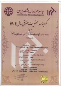 در اوج پژوهش صنعت، ما به تعهد خود به کیفیت و برتری در مهندسی افتخار می کنیم. ما مجموعه ای از گواهینامه ها و اعتبارنامه ها را به دست آورده ایم که تخصص، مهارت ها و شیوه های پیشرو در صنعت ما را نشان می دهد. این گواهینامه ها و اعتبارنامه ها نشان دهنده تعهد ما به ارائه خدمات مهندسی با کیفیت بالا به مشتریان و تلاش مستمر ما برای بهبود فرآیندها و شیوه هایمان است.
